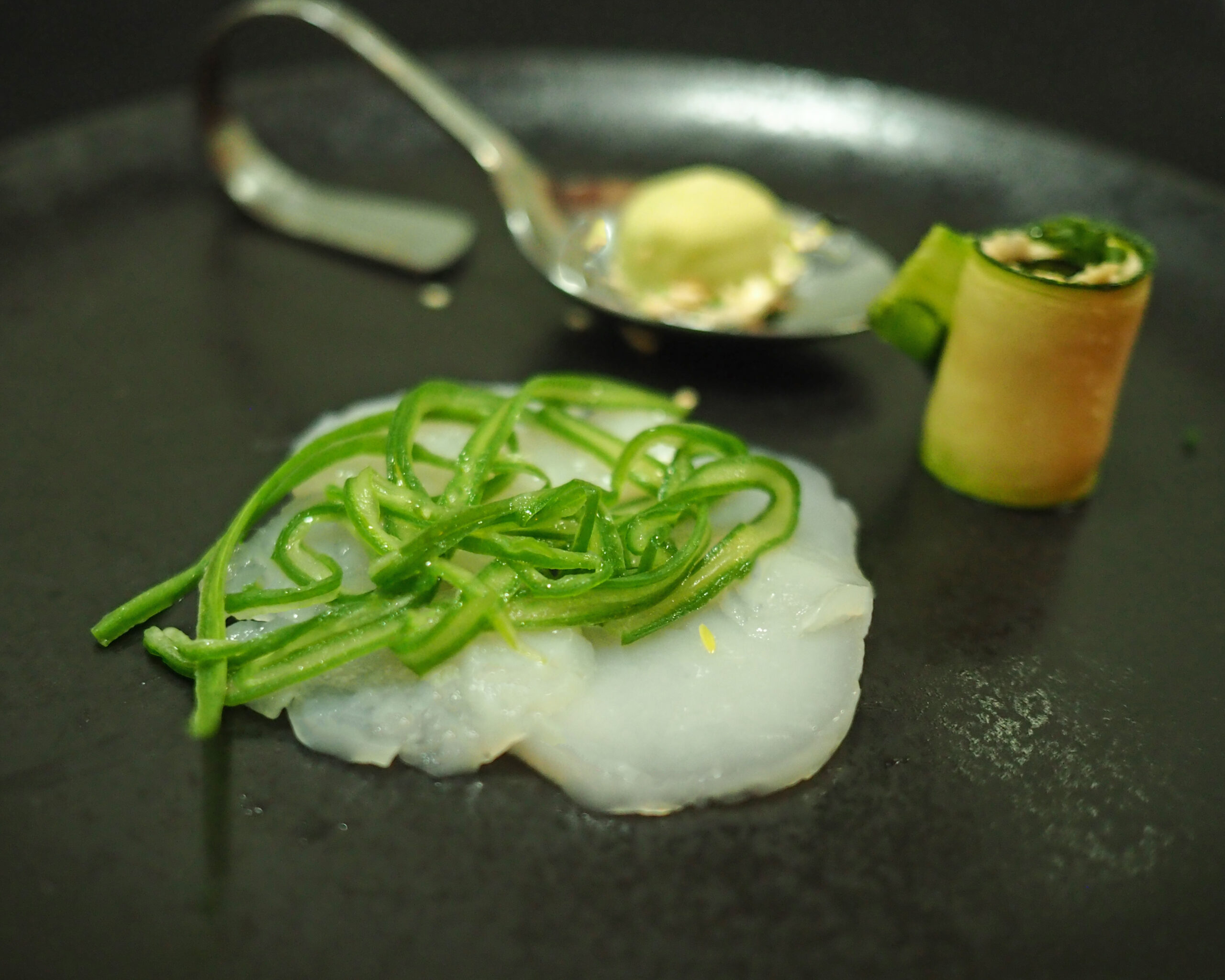 Maak met een dunschiller slierten in de lengte van de snijbonen. Blancheer en koel terug op ijswater.